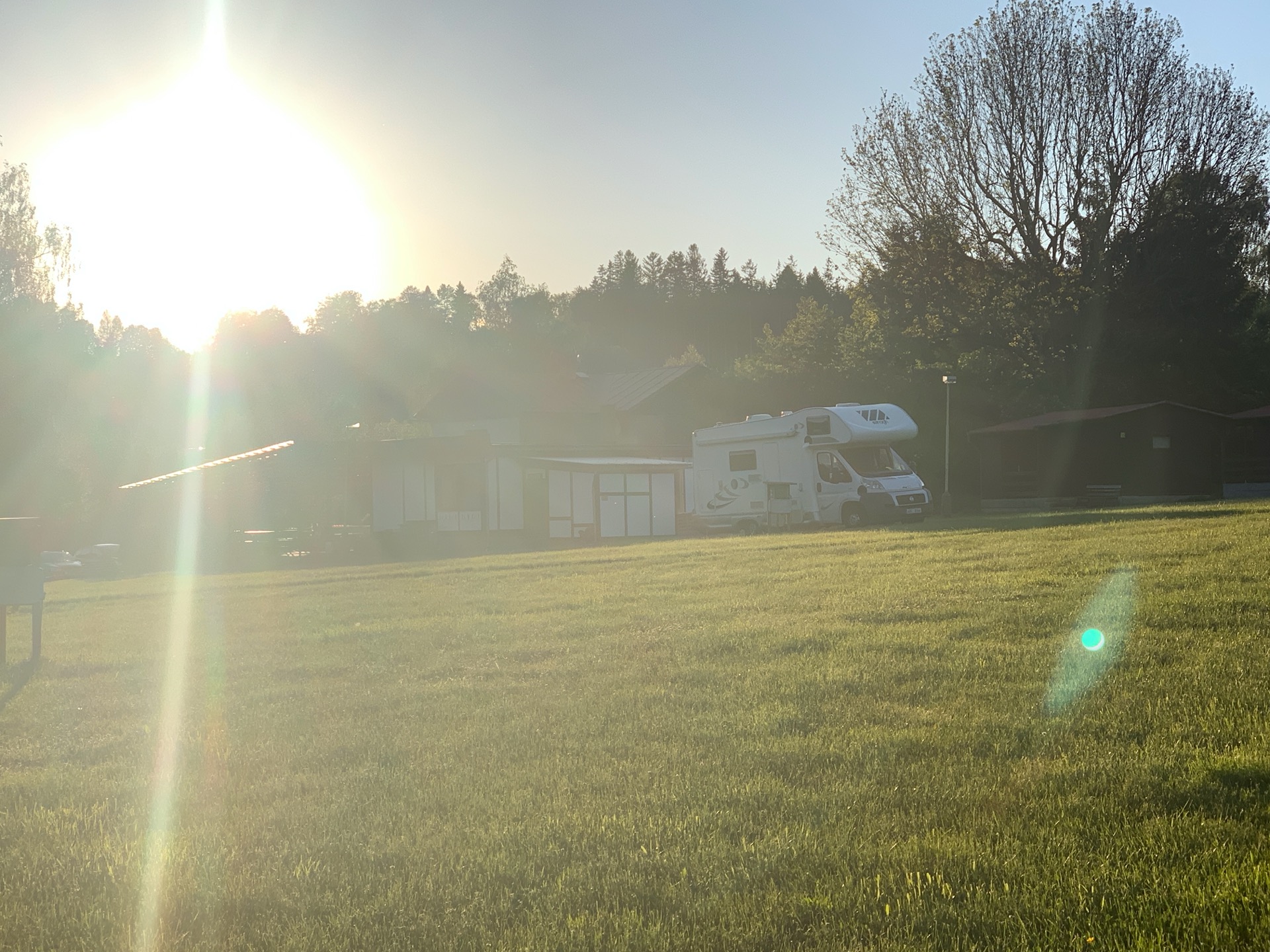 Nakonec jsme se přesunuli (za deště) do poměrně prů-serového kempu kousek od Moravské Třebové, kde jsme za deště zaparkovali na louce šikmo z kopce. Tak uvidíme ráno
